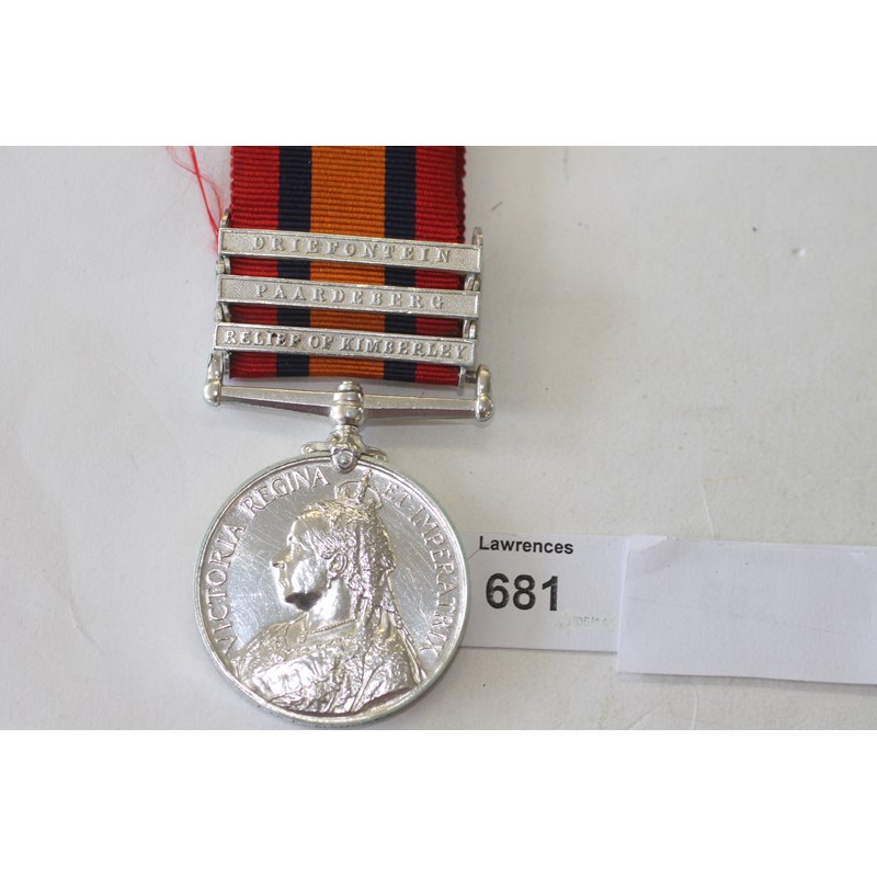 A 'Ghost Dated' reverse Queens South Africa Medal, with bars Relief of Kimberley-Paardeberg-Driefontein. Named to 10729 Pte P Mahoney R.A.M.C. Medal and bars confirmed on the South African War medal roll.