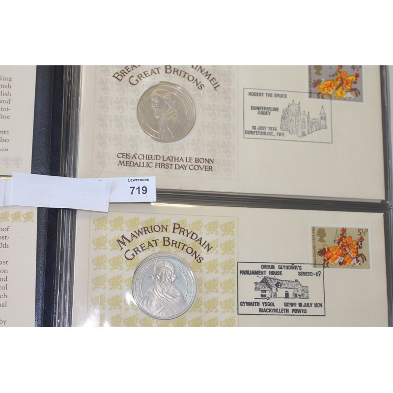 SILVER PROOF FIRST DAY COVERS. Four Silver Proof medallic First Day Covers, Great Britons in original album.