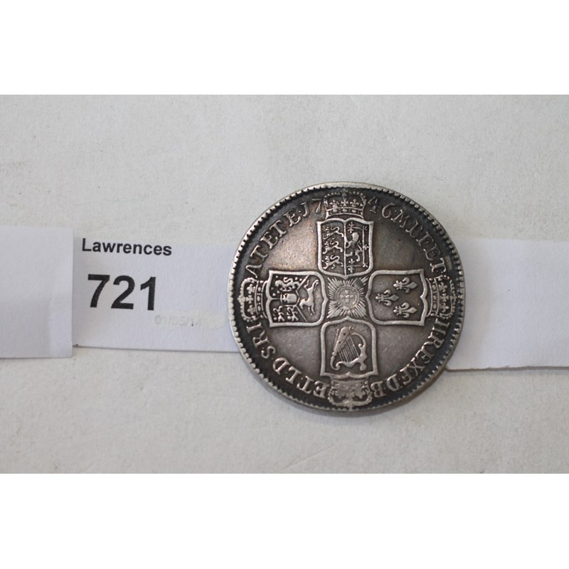 A HALFCROWN PIECE. A Halfcrown piece of George 11 with Lima below bust, dated 1746.