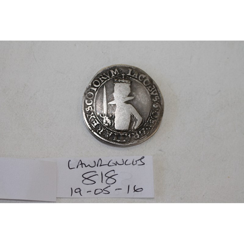 A James V1 of Scotland Halfcrown or Thirty Pennies piece, dated 1583. 4th Series coinage with James facing left and the legend JACOBVS 6 DEI GRATIA REX SCOTORVM obverse. I R and XXX beside a shield with the legend HONOR REGIS IVDICIVM DILIGIT 1583.
