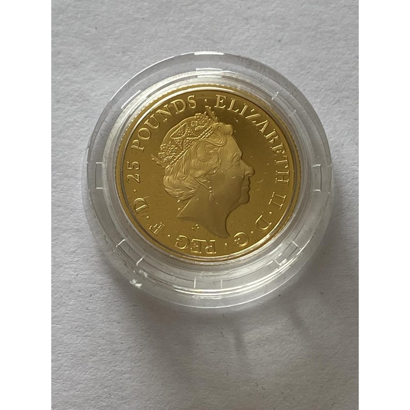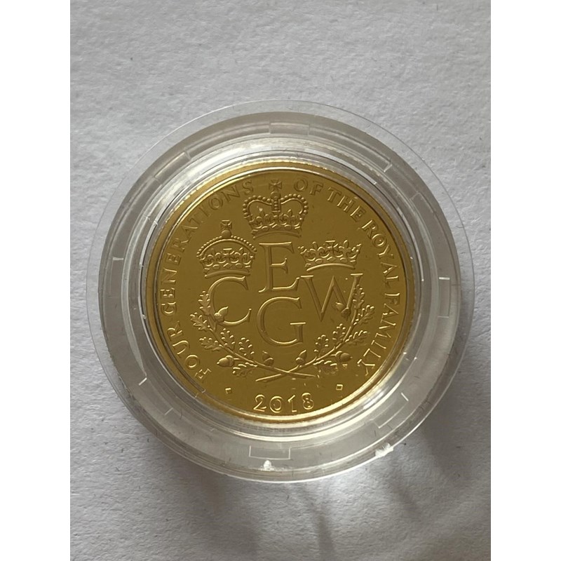 An Elizabeth II Four Generations of Royalty 2018 quarter-ounce proof gold coin, encapsulated and in Royal Mint presentation packaging, from an edition of 1,100, 7.8g.