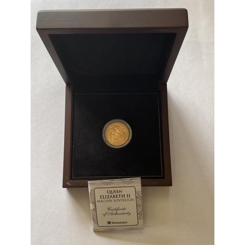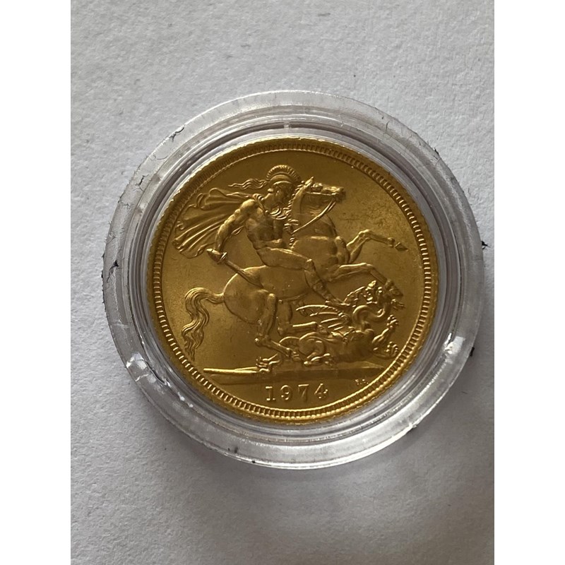 A Queen Elizabeth II 'Machin' Sovereign dated 1974, uncirculated in capsule and Westminster Mint presentation case with insert. 7.98g.