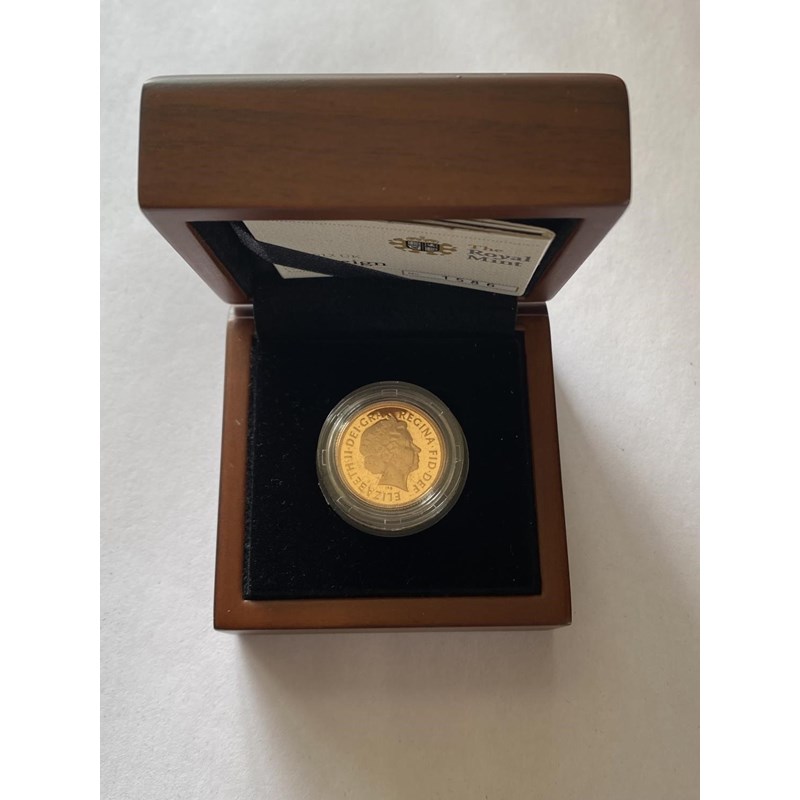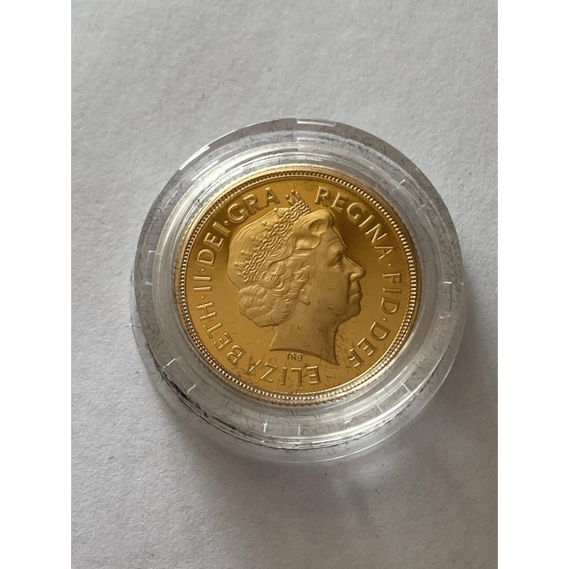 A Queen Elizabeth II Proof Sovereign dated 2012, encapsulated and in presentation Royal Mint packaging with insert numbered 1586 from a mintage of 8,144. 7.98g.