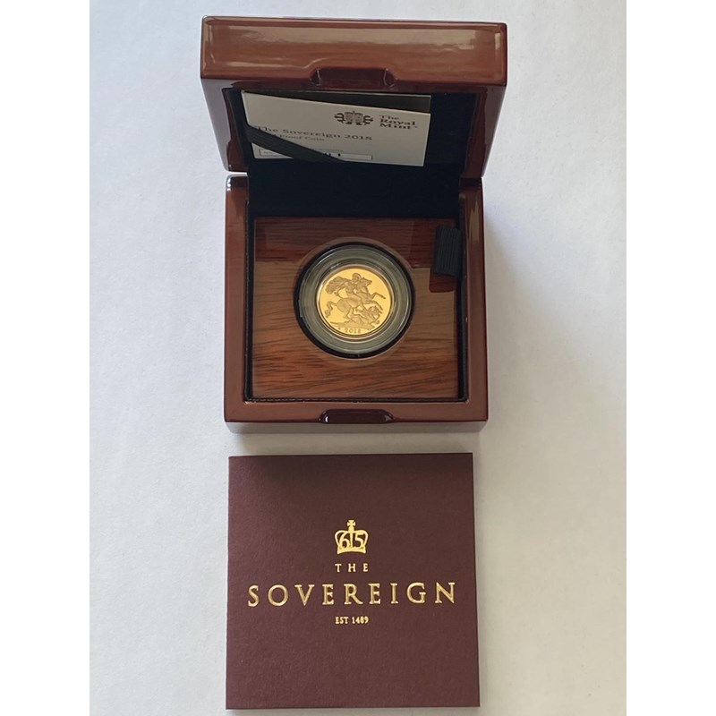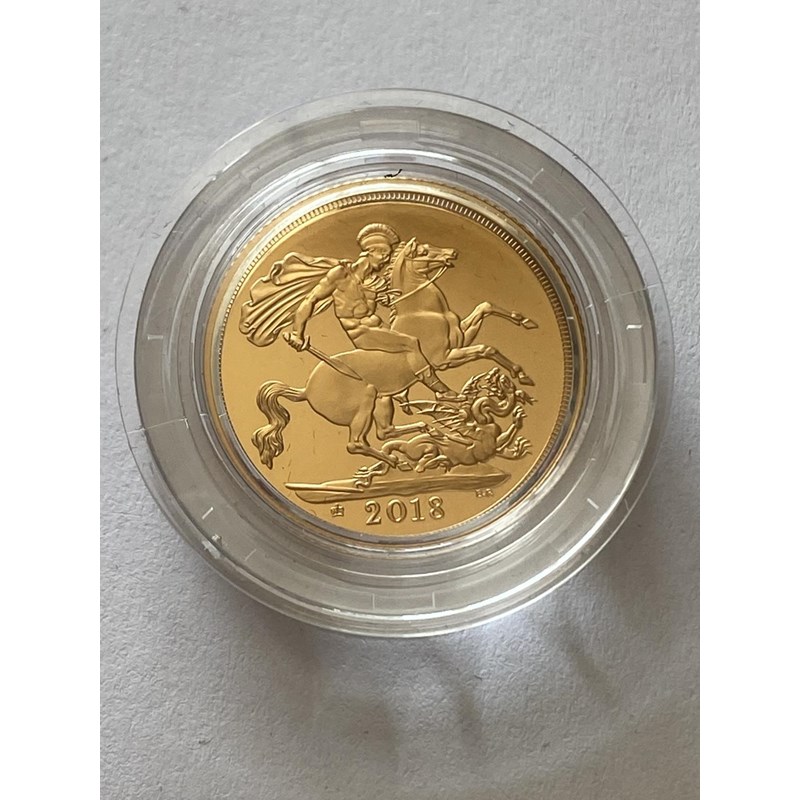 AN ELIZABETH II PROOF SOVEREIGN. An Elizabeth II Proof gold Sovereign dated 2018, encapsulated and in Royal Mint presentation packaging with insert suggesting a mintage of 13,500. 7.98g.