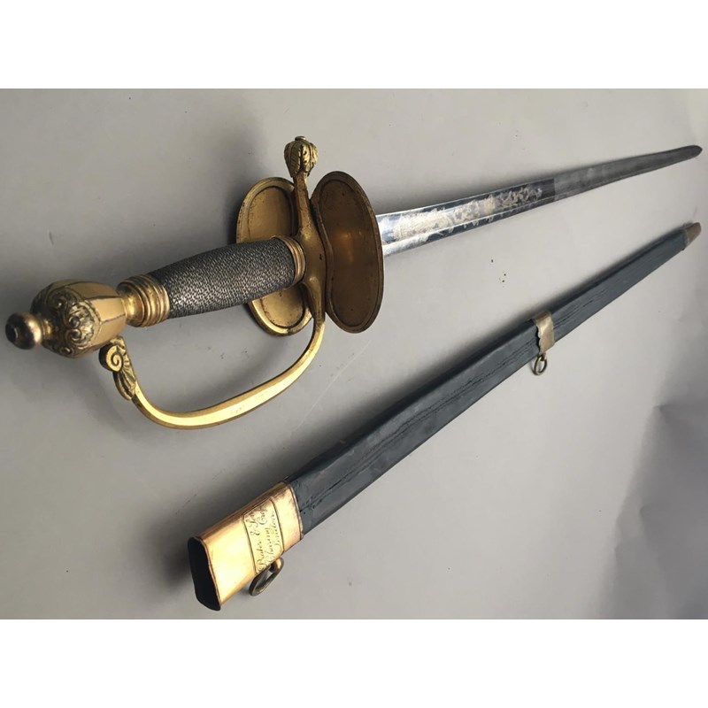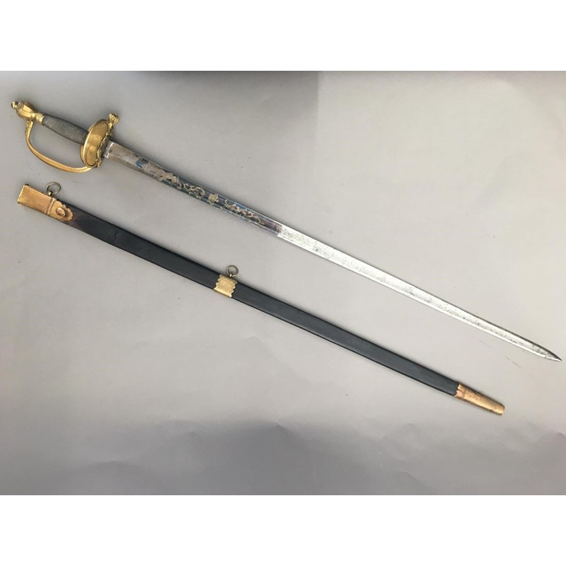 A 1796 PATTERN INFANTRY OFFICERS SPADROON AND SCABBARD.