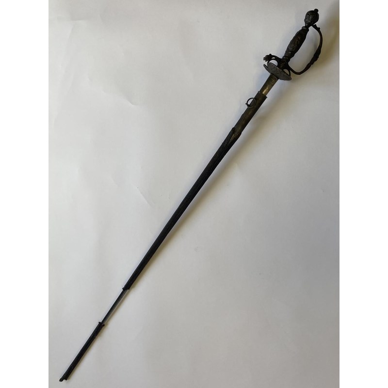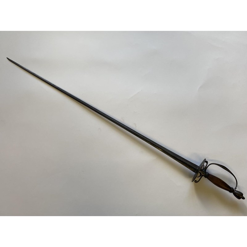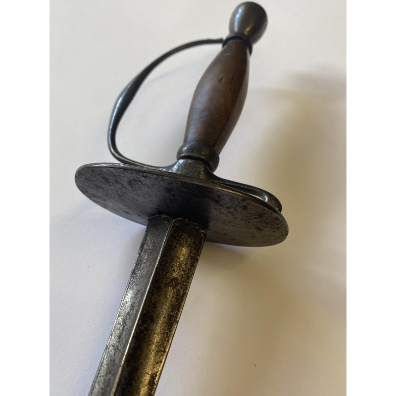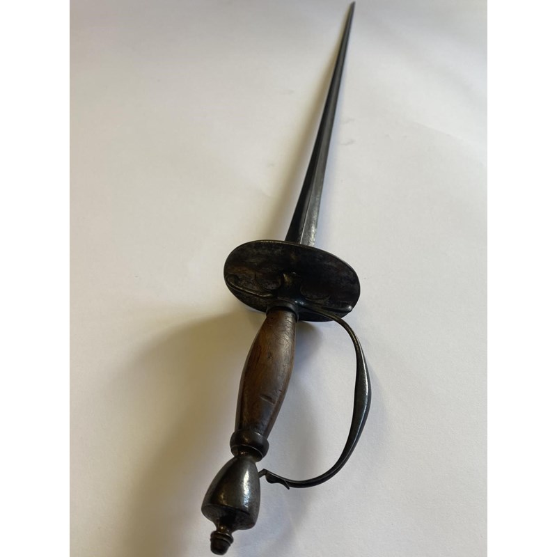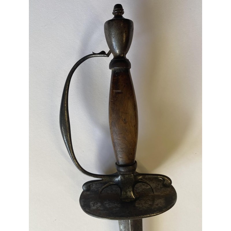 With a 79cm triform blade marked WSH, with an oval guard and wooden grip with slender bow and vase shaped pommel. 95cm overall.