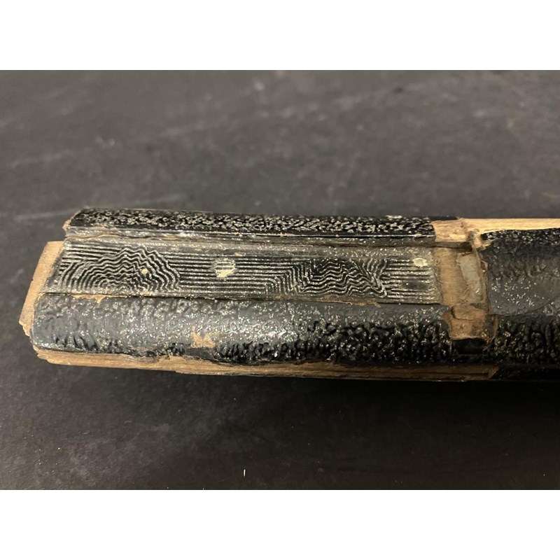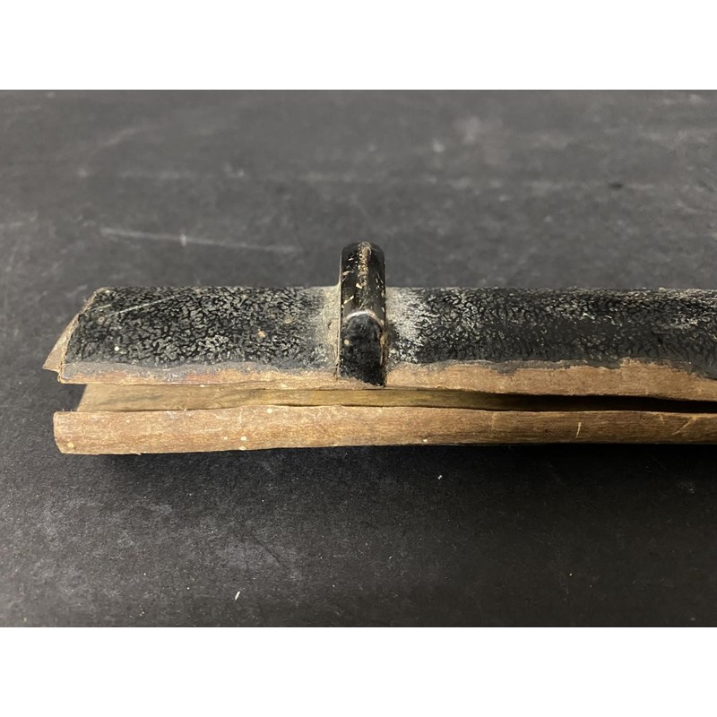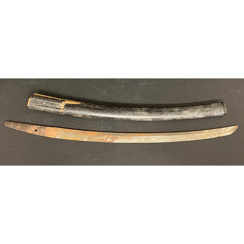 A 19TH CENTURY JAPANESE SHORT SWORD OR WAKASASHI BLADE. A 63cm unsigned blade, with a lacquered a black and silver fleck scabbard, 53cm.