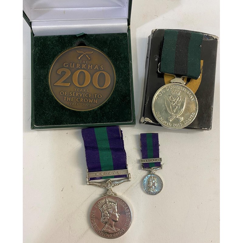 A GENERAL SERVICE MEDAL WITH MALAYA CLASP AND OTHER RELATED ITEMS TO THE 7TH GURKHAS.