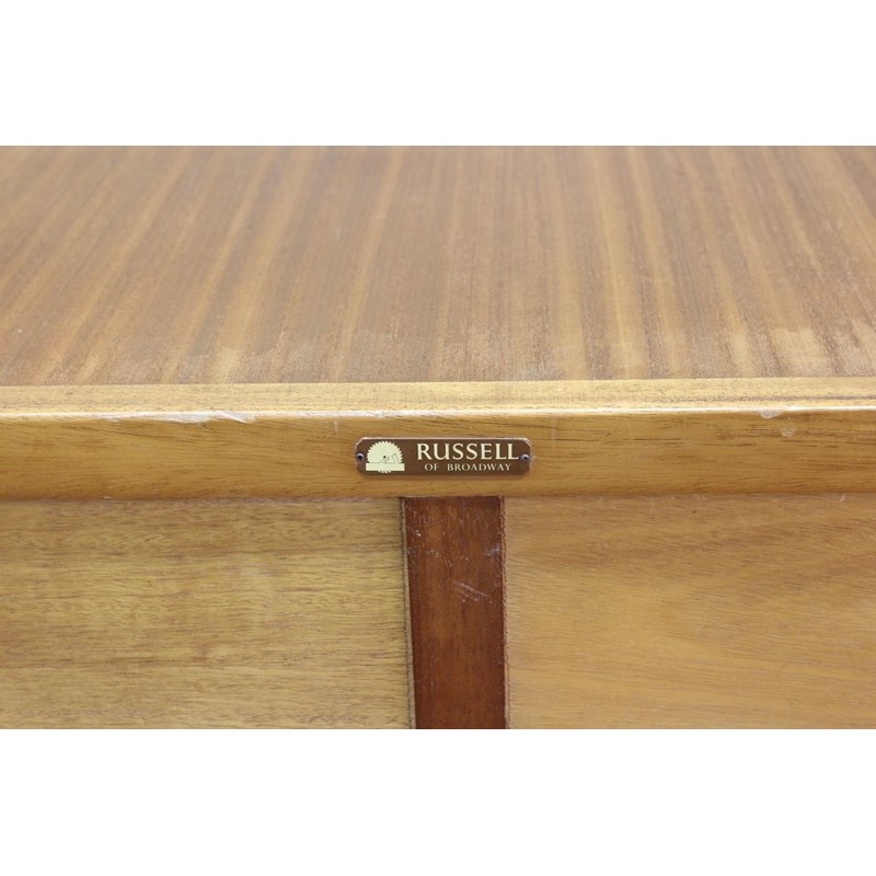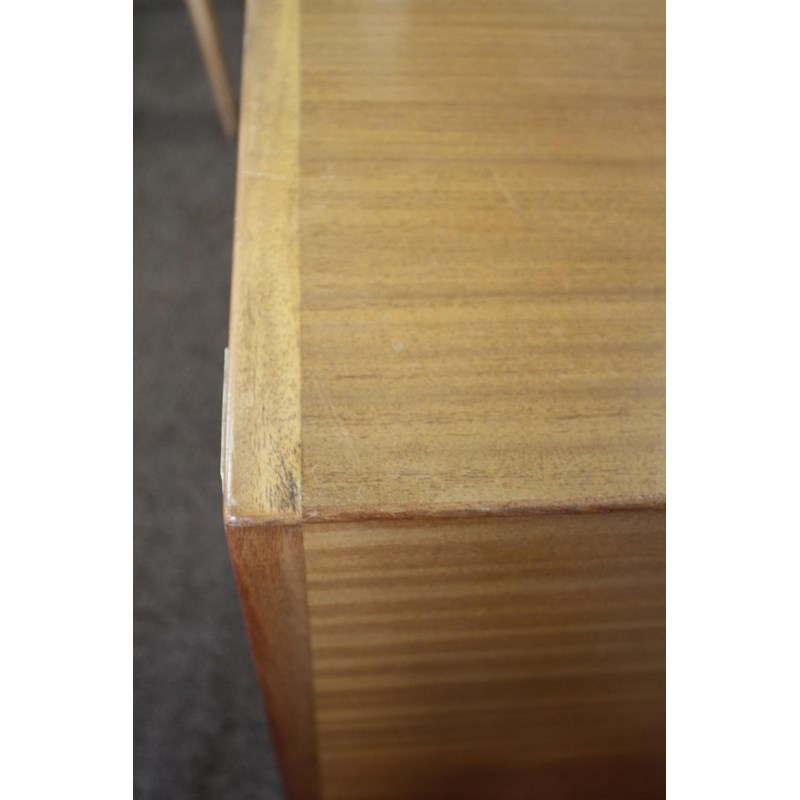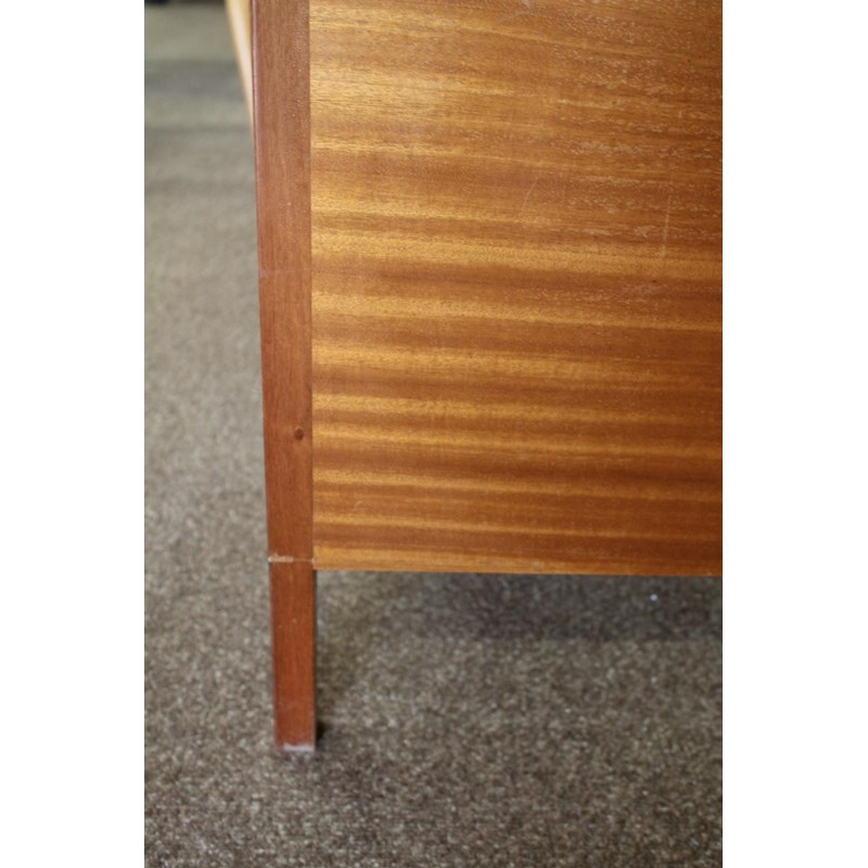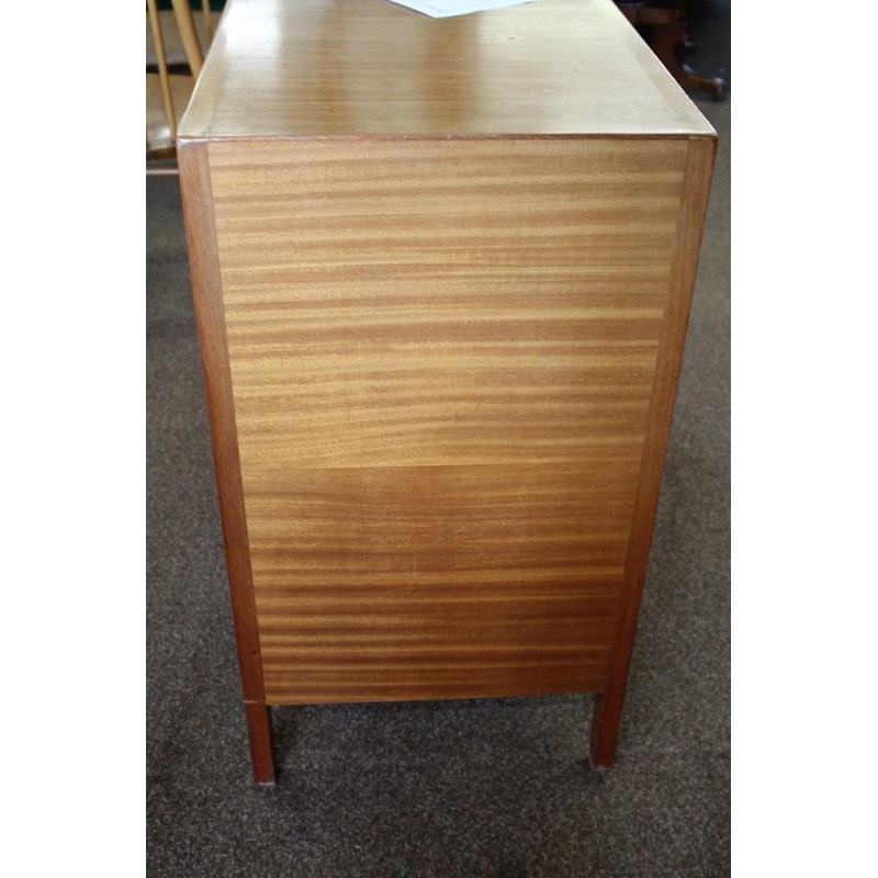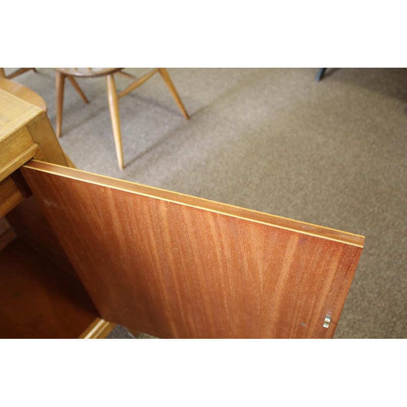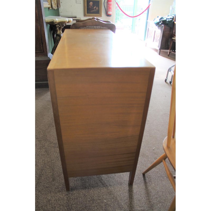 designed by David Booth and Judith Ledeboer in 1953, made in mahogany and veneered in Bombay rosewood, cut to reveal white birch. With internal drawer and shelf, and with plaques for Gordon Russell, Broadway, and retailers plaque for Newbery & Spindler, Bristol. 121cms across, 84cms high