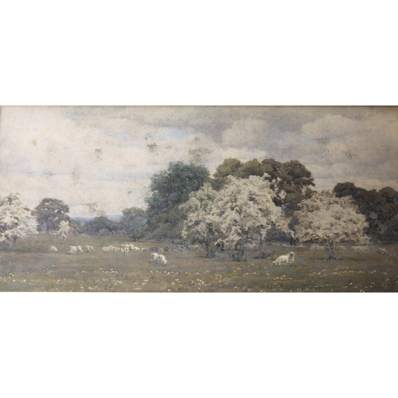 ALFRED WILLIAM PARSONS, RA, PRWS (1847-1920) SHEEP IN A FIELD Signed and dated 1870, watercolour 23 x 49cm.