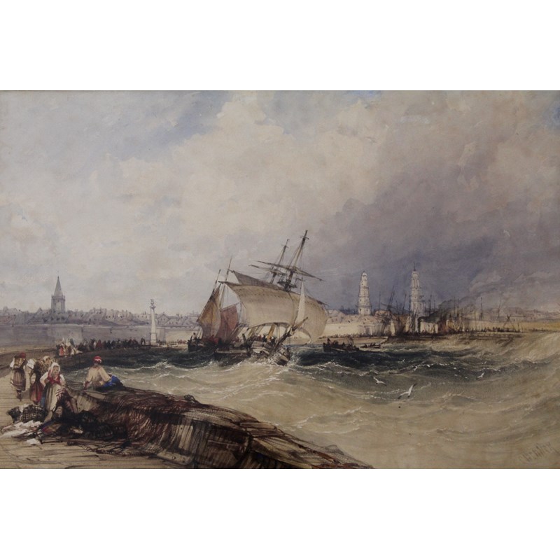 CHARLES BENTLEY (1806-1854) VIEW OF A COASTAL SCENE (NOT HULL) Signed, watercolour heightened with scratching out 29.5 x 43.5cm.