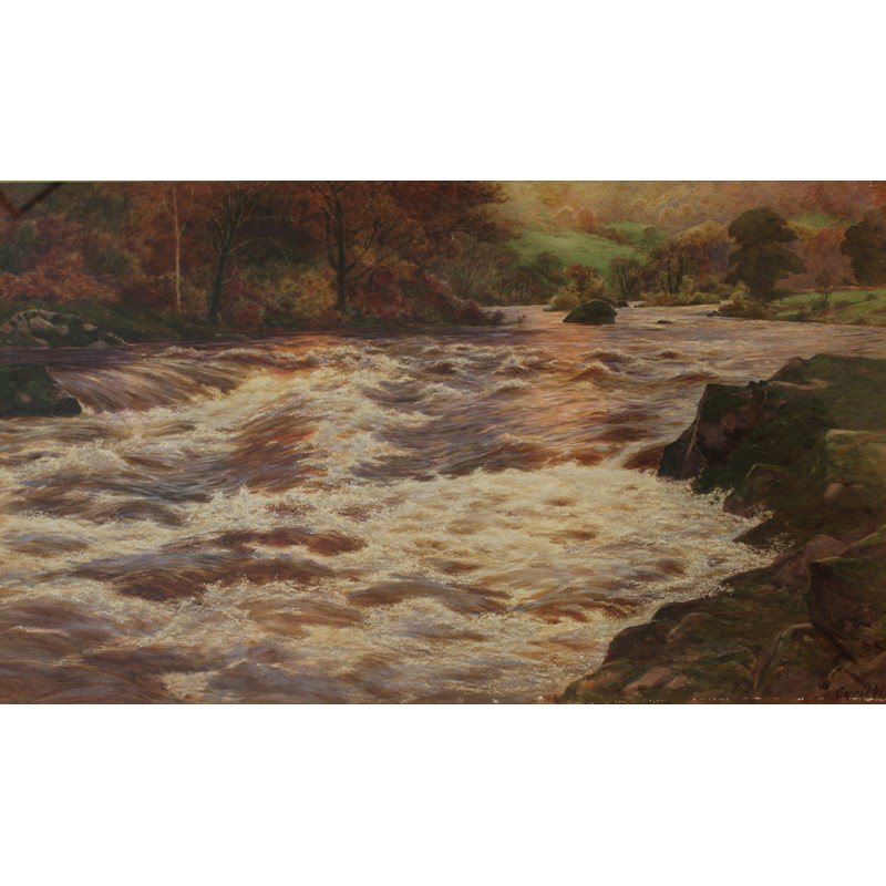 CYRIL WARD (1863-1935) A ROCKY RIVER SCENE, AUTUMN Signed, watercolour 44.5 x 76.5cm.
