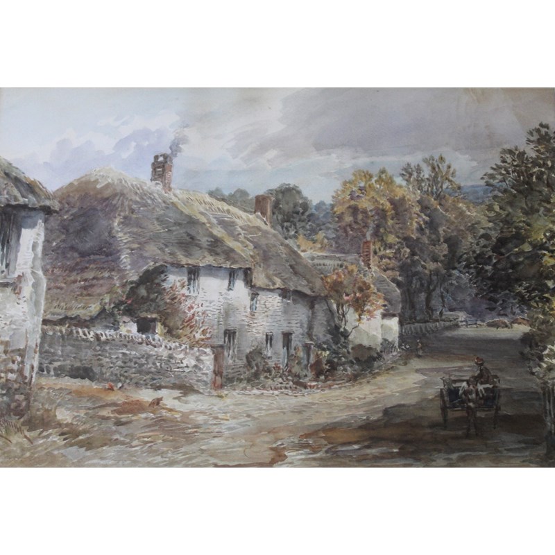 ALFRED LEYMAN (1856-1933) COTTAGES AT GITTISHAM, DEVON Signed, watercolour over traces of pencil 35.5 x 52.5cm.