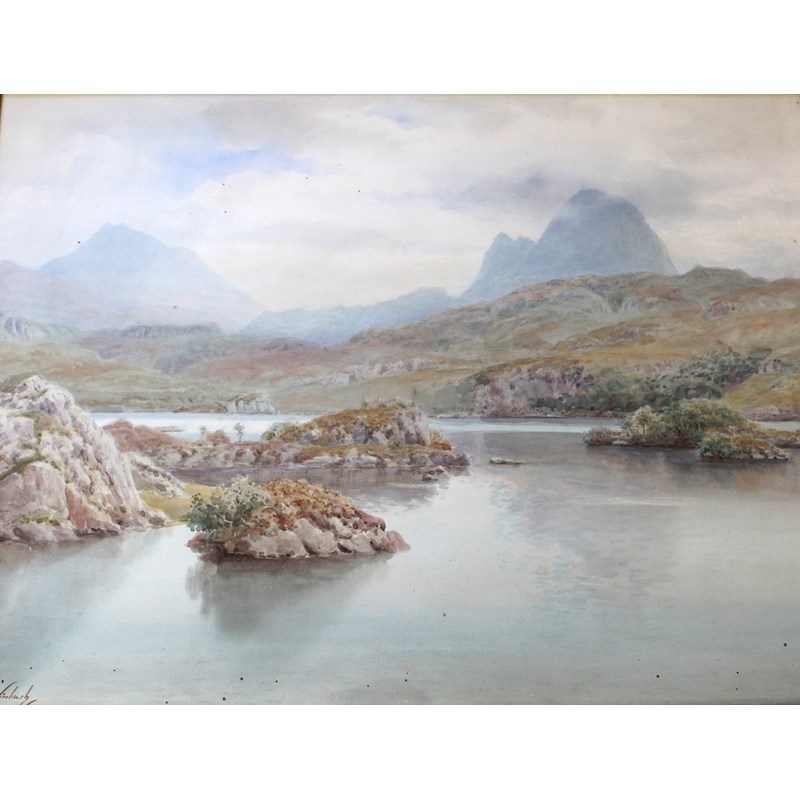 HENRY BOWSER WIMBUSH (1858-1943) SUILVEN FROM LOCH CANISP, SUTHERLAND Signed, watercolour 58 x 78cm.