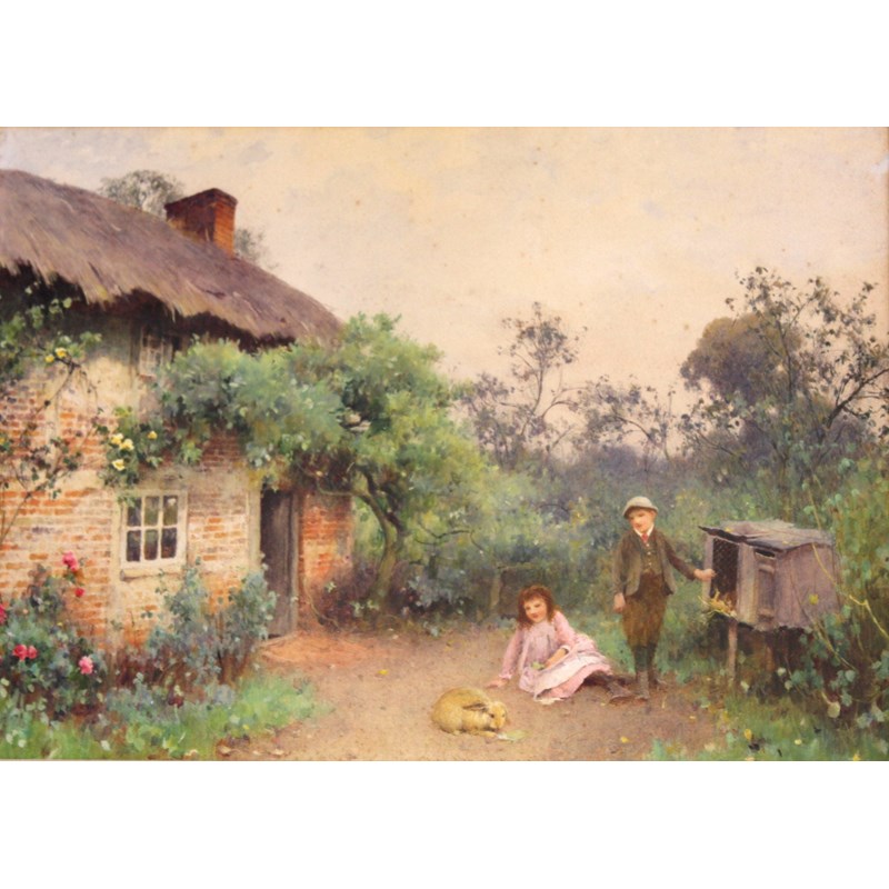 ‡BENJAMIN D. SIGMUND (1857-1947) THE PET RABBIT Signed, watercolour 25 x 35cm.