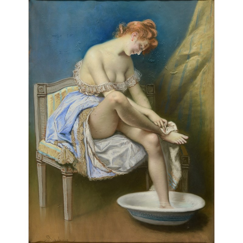 WLADYSLAW BAKALOWICZ (1831-1904) LA TOILETTE Signed, pastels on paper laid onto a stretched canvas 97.5 x 73cm.