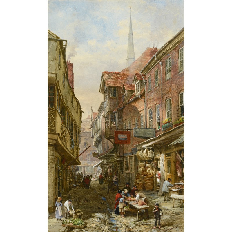 LOUISE RAYNER (1832-1924) BUTCHER ROW, SHREWSBURY Signed clearly but with traces of a second signature, watercolour and gouache 44. x 25.5cm.