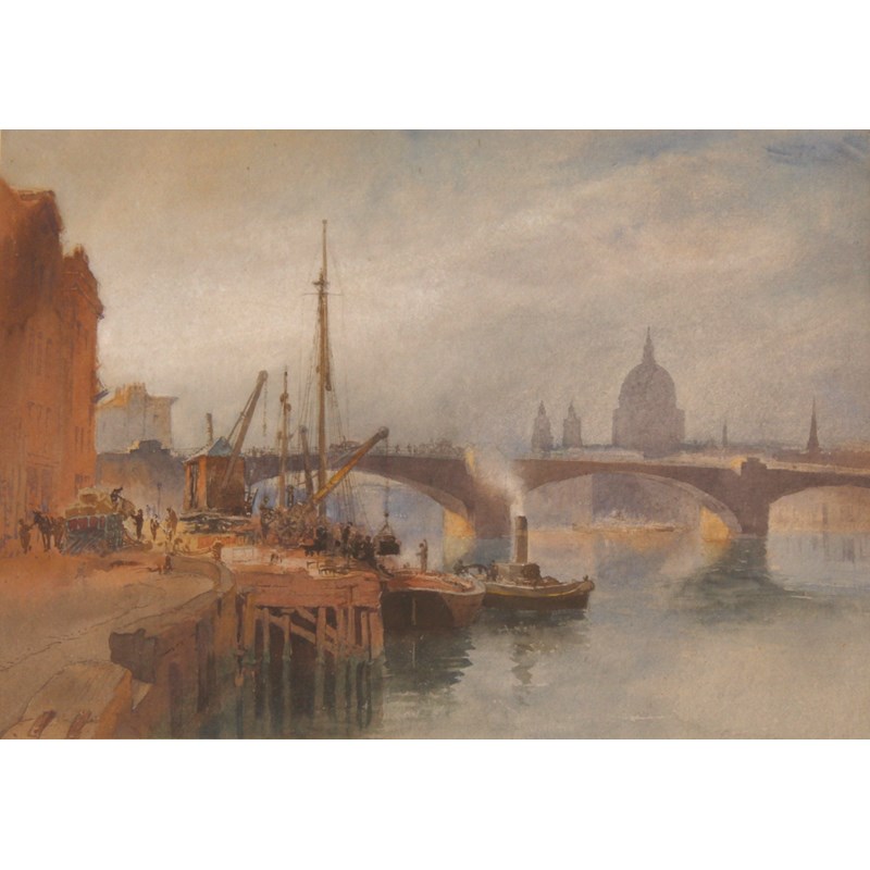 RICHARD HENRY WRIGHT (1857-1930) A LADING STATION ON THE THAMES Watercolour and pencil 20.5 x 28.5cm.