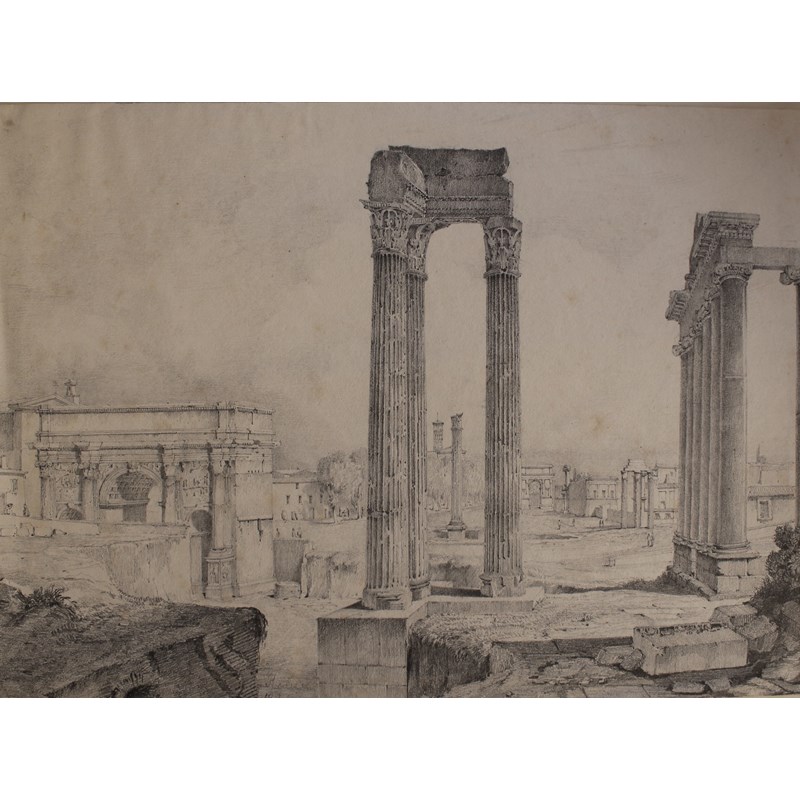 comprising approx. 27 drawings and watercolours etc in various media, to include a view of the Forum Romanum, Rome, 1834, indistinctly signed; a watercolour of the corvette Echo off Tunis; a study after J. L. David, also landscapes, portraits, figure subjects etc, mainly 19th Century; various sizes, all unframed (a lot)