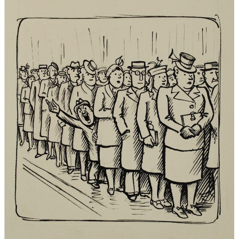 ‡HENRY MAYO BATEMAN (1887-1970) THE VOCAL MINORITY Pen and black ink over traces of pencil, unframed Image 9.5 x 9.5cm.; sheet 14.7 x 13.5cm.