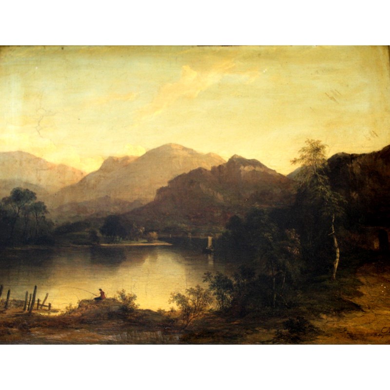 FOLLOWER OF CHARLOTTE NASMYTH (1804-1884) A FISHERMAN ON THE SHORES OF A LOCH Bears a signature and date 1851, oil on canvas 45.5 x 60cm.