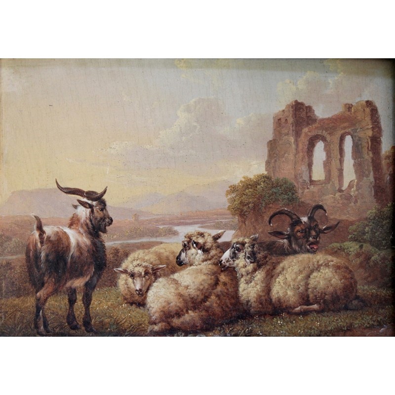 CHARLES TOWNE (1763-1840) CATTLE AND GOATS; SHEEP AND GOATS A pair, oil on panel Each 11.5 x 16cm. (2)