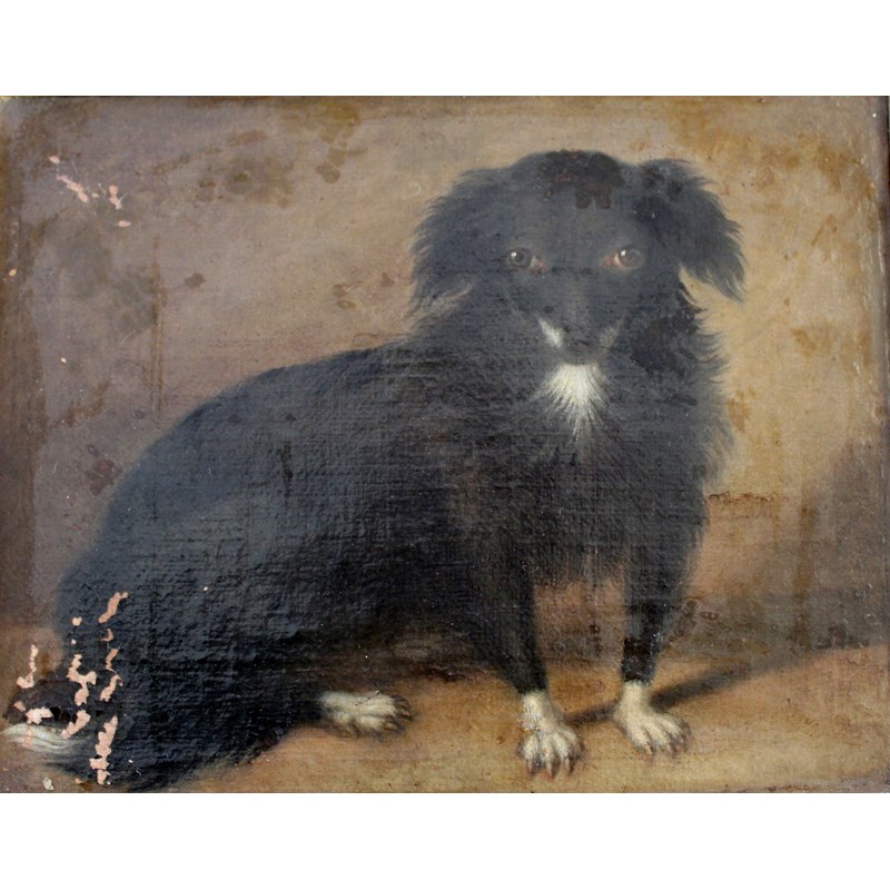 ENGLISH PROVINCIAL SCHOOL, 19th CENTURY A BLACK POMERANIAN DOG Oil on canvas 29 x 37cm.