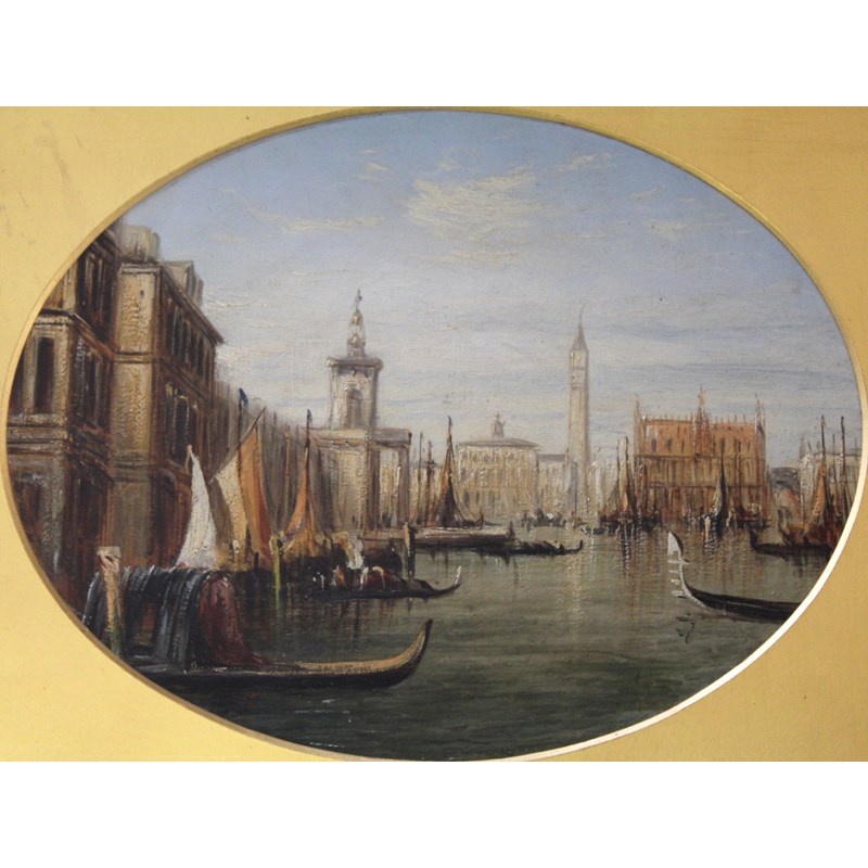 FRANCIS MOLTINO (1818-1874) VENICE A pair, one bears signature J. M. W. Turner, oil on board, mounted oval Each 27 x 34.5cm. (2)