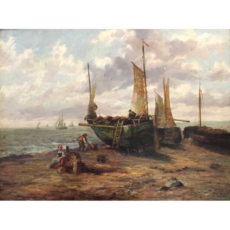CIRCLE OF THOMAS ROSE MILES (1844-1916) OFF WHITBY Bears signature, title and date 1884, oil on canvas 44.5 x 59.5cm.
