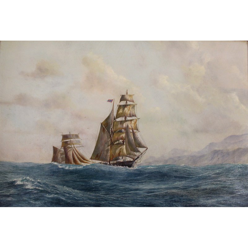 ‡E** D** WALKER (b.c.1937) LEON, A BRIGANTINE, SAILING INTO A GROUND SWELL Signed, oil on canvas 33.5 x 49.5cm.