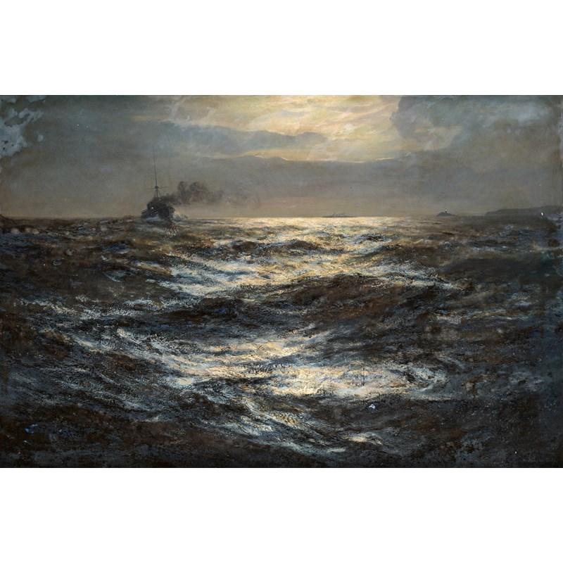 SEASCAPE, NIGHTFALL: A COASTAL DEFENCE VESSEL AND A BATTLE CRUISER BEYOND, TRADITIONALLY IDENTIFIED AS HMS HOOD