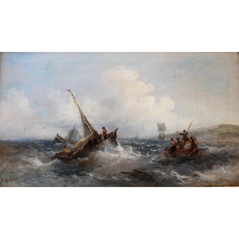 W** B** WEBB (Circa 1880-1910) FISHING BOATS IN CHOPPY WATERS Signed, oil on canvas 45 x 80.5cm.