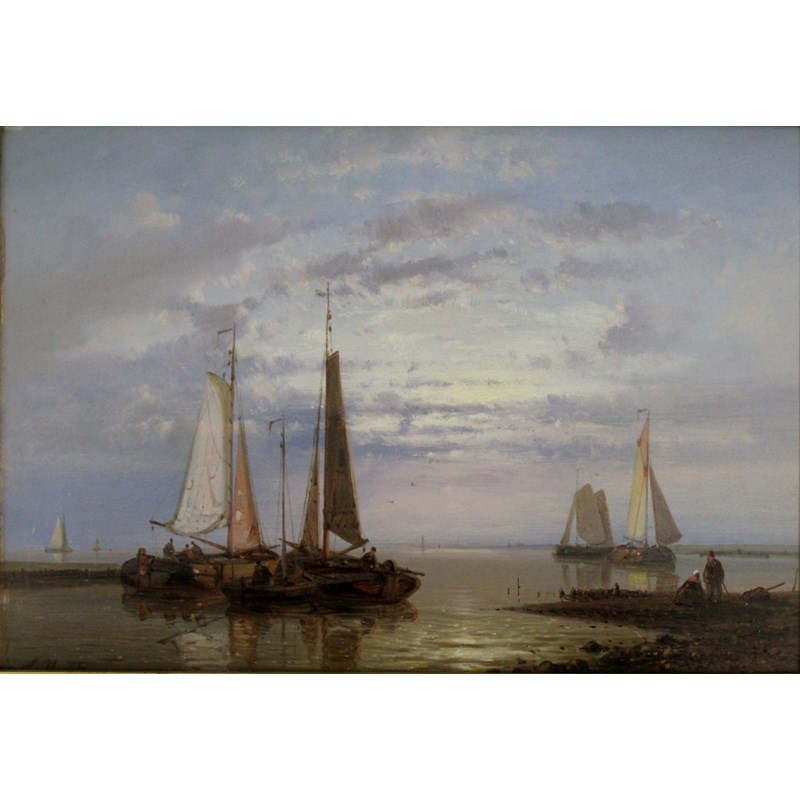 ABRAHAM HULK (1813-1897) VESSELS AT TWILIGHT A pair, both signed, oil on panel Each 17 x 24.5cm. (2)