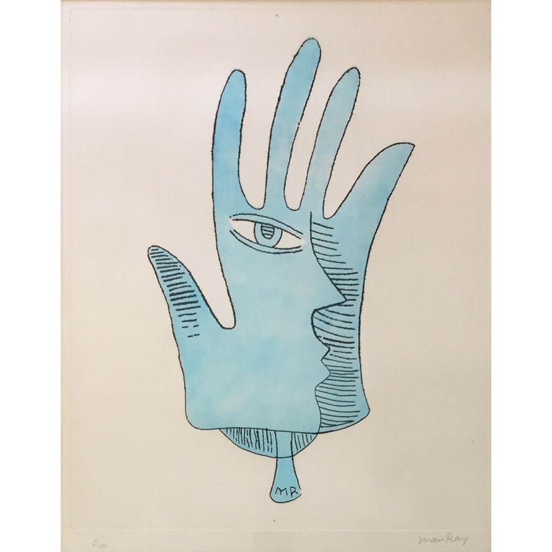 ‡EMMANUEL RADNITSKY, called MAN RAY (1890-1976) MAIN BLEUE Etching with aquatint printed in colour, 1971, signed and numbered 2/100 Plate 49 x 39.5cm.