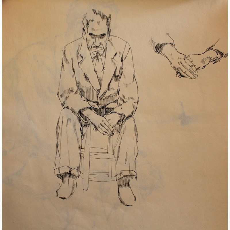 Containing approximately 62 leaves of figure studies and life drawings in pen and black ink and in pencil, also some leaves of writings, one leaf inscribed D. P. Bliss/ School of Art MA, ARCA/ 167 Renfrew Street/ Glasgow C3