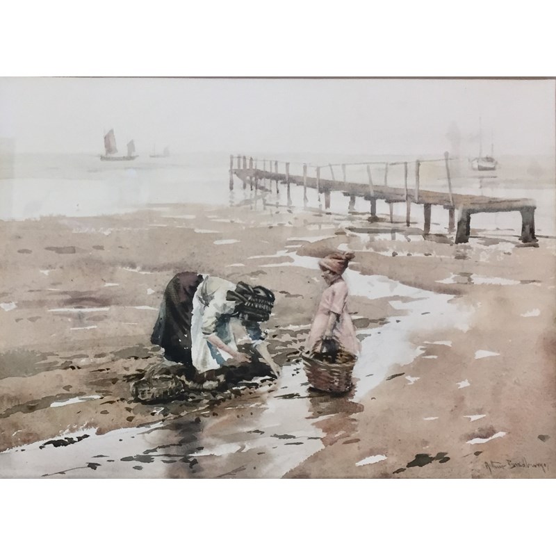 ‡ARTHUR ROYCE BRADBURY (1892-1977) GATHERING MUSSELS Signed and dated 27, watercolour and pencil 24.5 x 34.5cm.