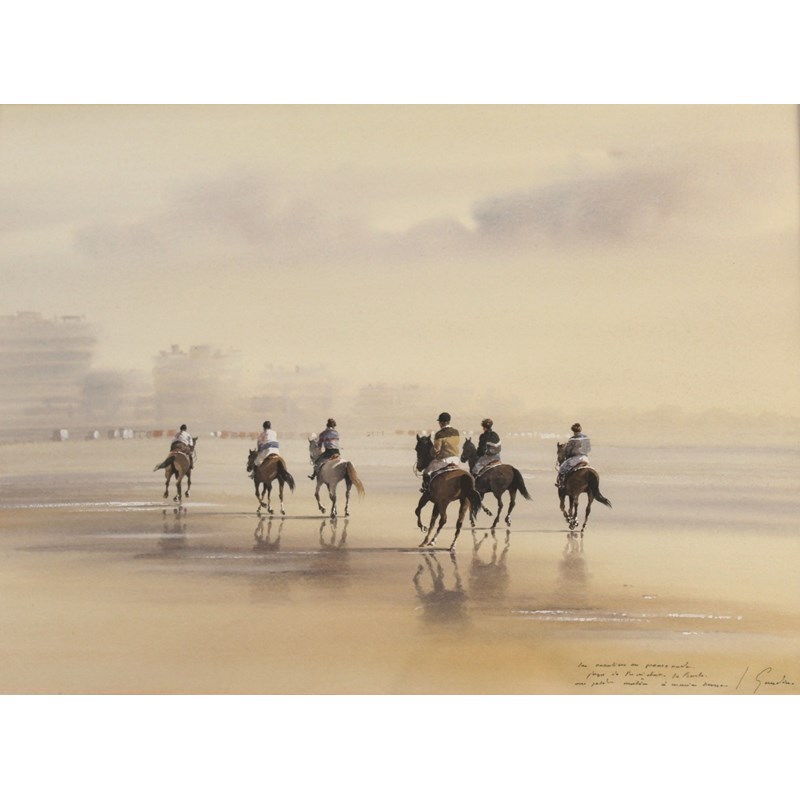 ‡ALAIN GAUDIN (b.1951) MORNING EXERCISE Signed and dated 87, inscribed indistinctly in pencil alongside, watercolour and bodycolour 25 x 34.5cm.