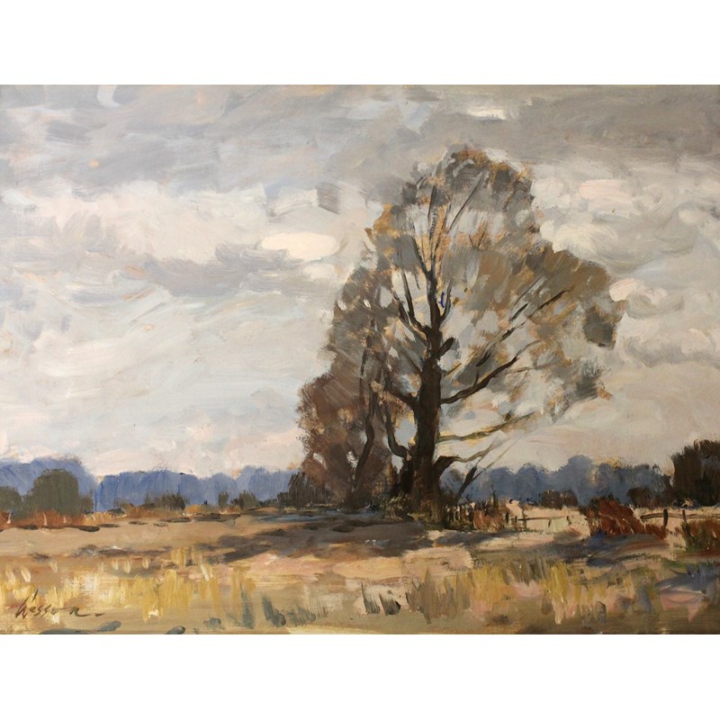‡EDWARD WESSON (1910-1983) AUTUMN LANDSCAPE Signed, oil on board 44.5 x 59.5cm.