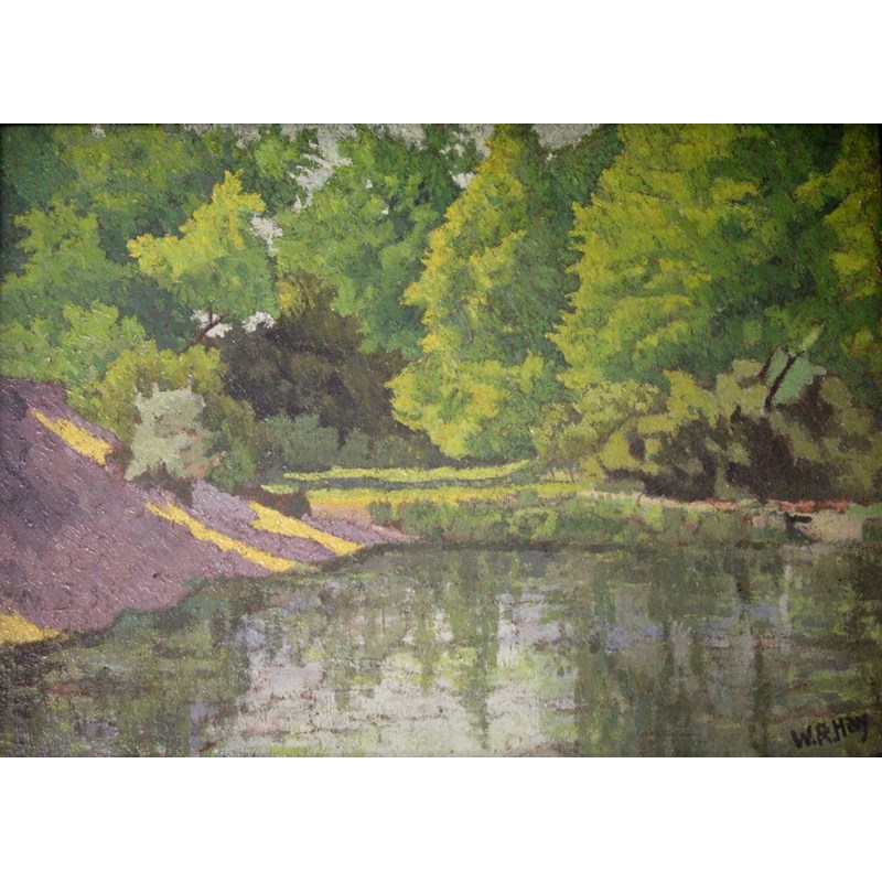 ‡WILLIAM ROBERT HAY (1886-1964) A QUIET POOL Signed, also signed verso, oil on board 27.5 x 37.5cm.
