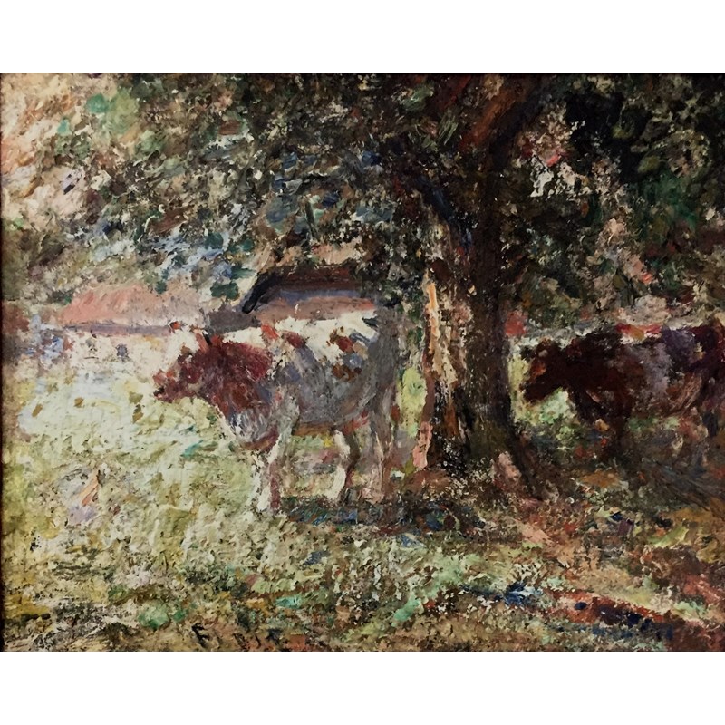 HARRY FIDLER (1856-1935) MIDDAY SHADE Signed, oil on canvas, laid on board. 21 x 26cm.