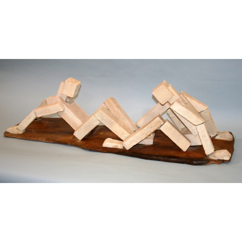 ‡RACHEL RECKITT (1908-1995) TWO SEATED FIGURES Cast concrete blocks upon a wooden base 27 x 99cm.