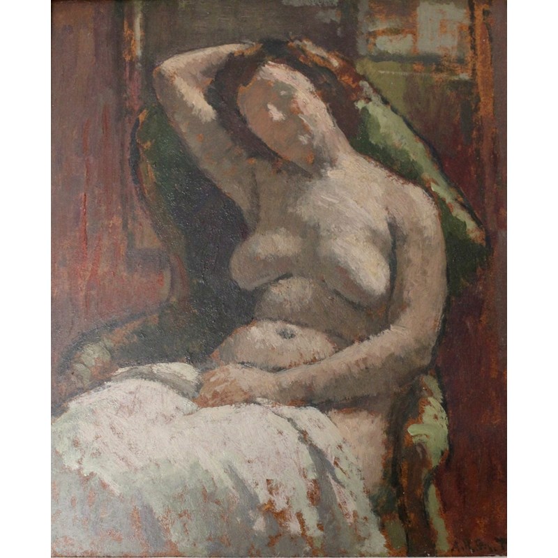 ‡ARTHUR RALPH MIDDLETON TODD, RA (1891-1966) NUDE IN A CHAIR Signed with initials, oil on masonite 31.5 x 24cm.
