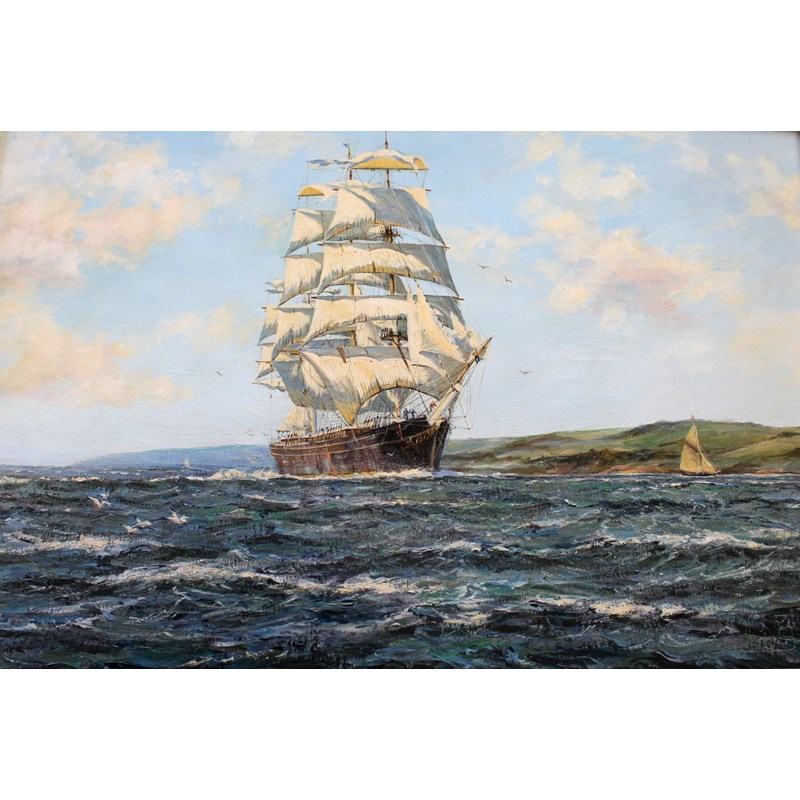 ‡HENRY SCOTT (1911-2005) HOME WATERS, THE CUTTY SARK Signed, oil on canvas 49.5 x 74.5cm.