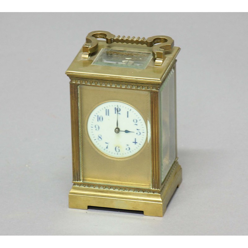 FRENCH BRASS FOUR PANE CARRIAGE CLOCK,