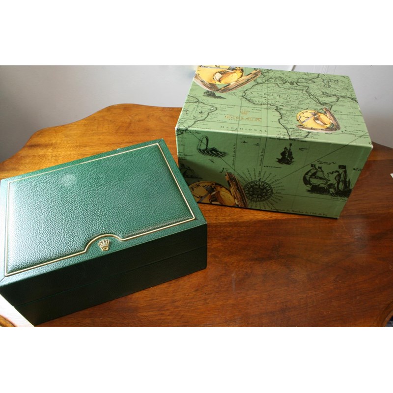 A GREEN LEATHER BOX FOR A ROLEX WRISTWATCH 15 20.5cm, together with an outer box for Rolex