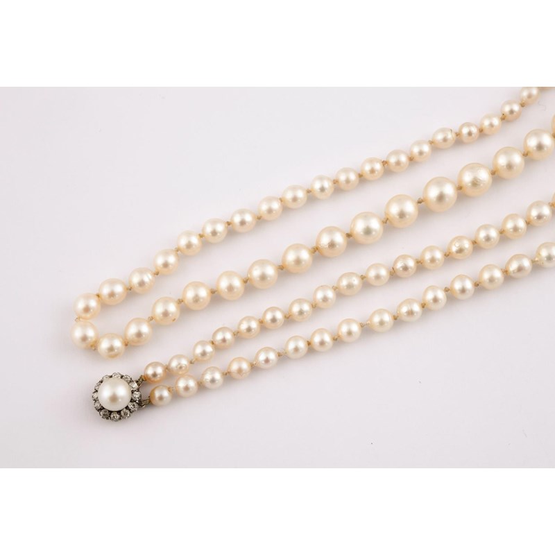 the pearls graduate from approximately 5.0mm to 8.5mm to a diamond and cultured pearl cluster clasp set in gold, 46cm long