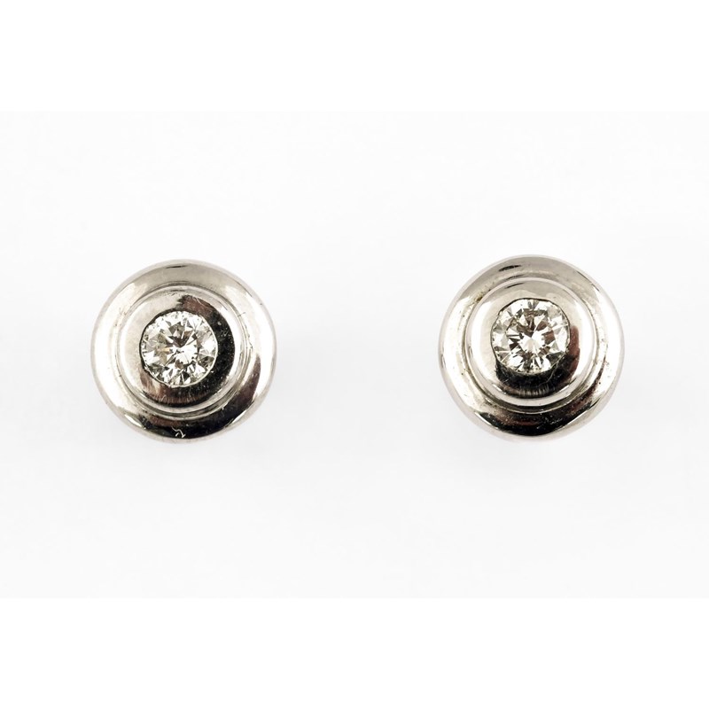 A PAIR OF DIAMOND STUD EARRINGS each set with a circular-cut diamond in platinum