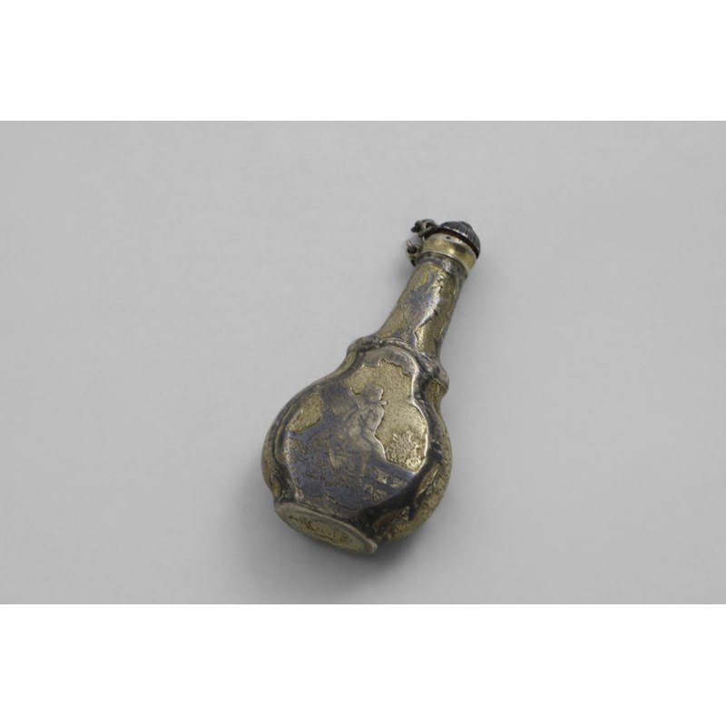 AN EARLY 18TH CENTURY RUSSIAN PARCELGILT & NIELLOWORK SCENT FLASK