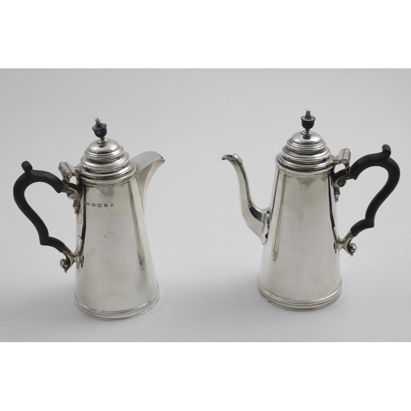 with domed covers and vase-shaped finials, by James Dixon & sons, Sheffield 1933/34; 7.25" (18.5 cms) high; 24 oz (2)
