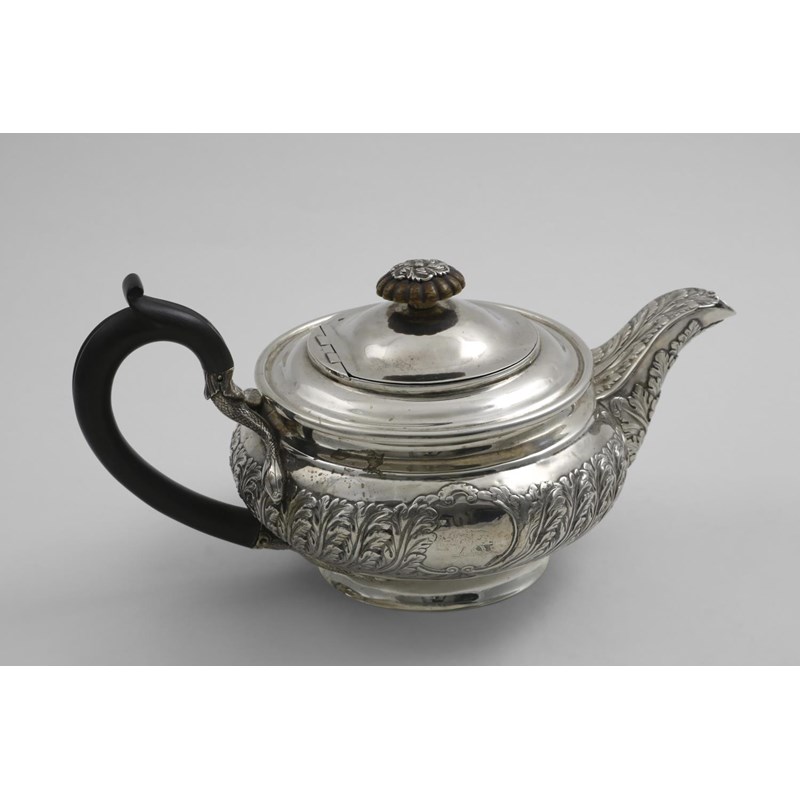 A GEORGE III SQUAT CIRCULAR TEA POT